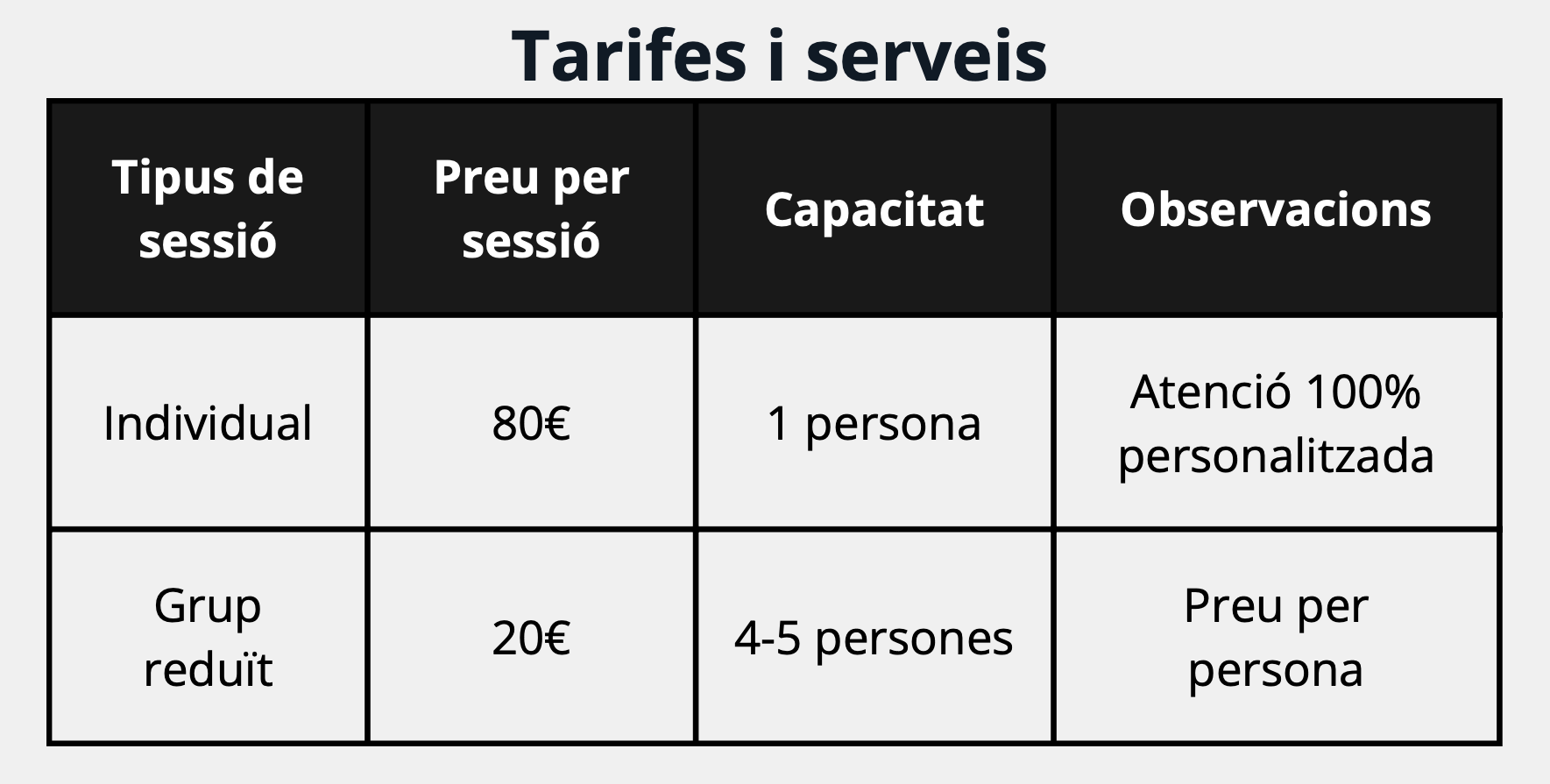 TARIFES I HORARIS