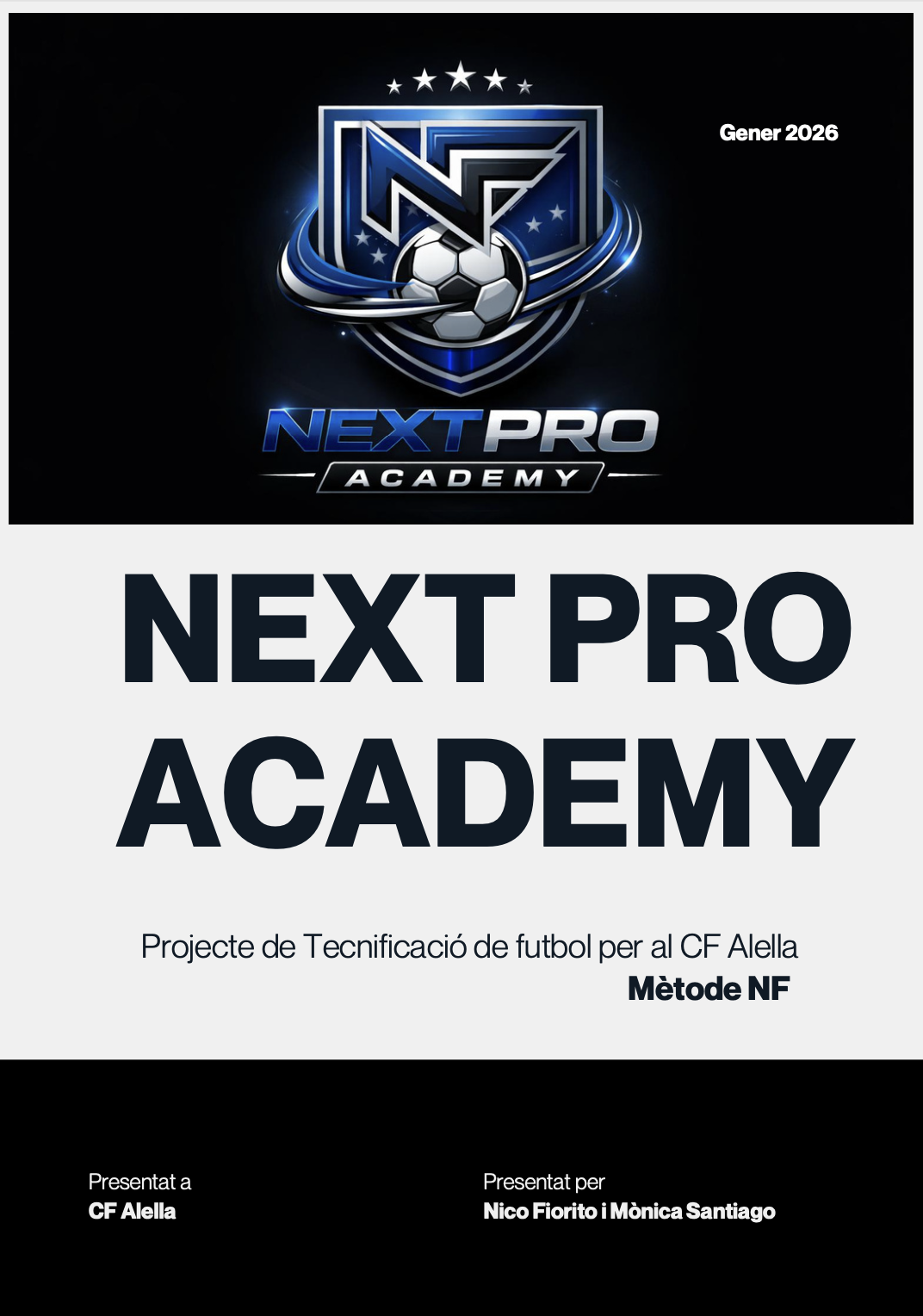 Aquest projecte neix amb la intenció d’oferir una tecnificació de futbol integral i professional, basada en el Mètode NF, un sistema holístic que combina els aspectes tècnics, tàctics, físics i psicològics per formar futbolistes complets i preparats per competir al màxim nivell.