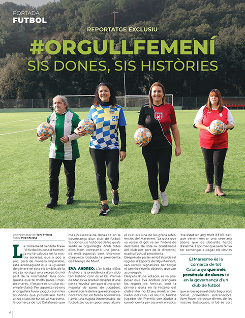 La publicació esportiva realitza un extens reportatge amb les sis presidentes de clubs del Maresme. La Cristina és una d’elles